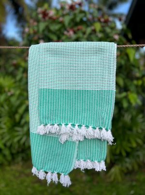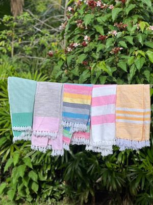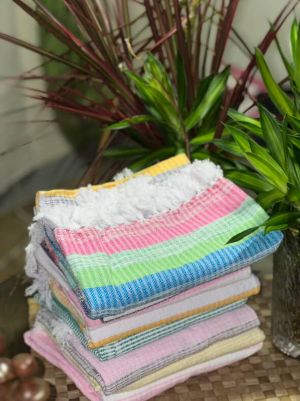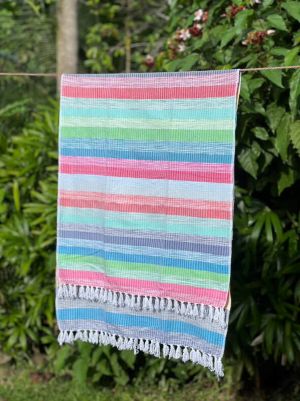 Handwoven from 100% upcycled cotton threads recovered from excess textile production, the Inabeg Handwoven Towel gives new life to materials that would otherwise go to waste. Soft yet durable, it is designed for everyday versatility. Use it as a scarf, beach towel, travel blanket, or cover-up. Each piece reflects mindful craftsmanship while supporting women-led, climate-resilient livelihoods.